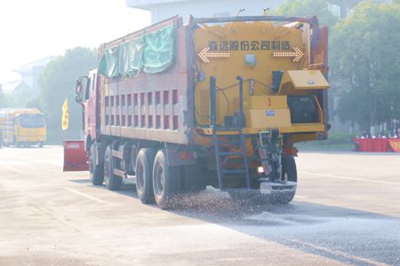 演練活動在高速管理公司所轄杭浦高速管理處開展,20多名演練人員,1臺渦噴6吹雪車、2臺撒鹽機、2臺雪鏟車、多臺路巡車嚴陣以待,積極投入到演練活動中來。隨著演練總指揮一聲令下,渦噴6吹雪車轟轟隆隆啟動了,大噴頭里一股熱浪急速涌出。“這輛吹雪車是公司1月份新引進除雪設(shè)備,它擁有航空軸流式渦噴6發(fā)動機,最大吹雪速度≥20km/h,一次除雪寬度≥30m,功率大,風(fēng)力強、除雪效力高,能有效地清除車體兩側(cè)積雪和浮冰,是嘉興境內(nèi)首臺吹雪車,是冬季高速公路除雪保暢工作的終極利器”杭浦管理處主任周劍介紹道,“是我們冬季抗冰除雪的‘新底牌’和主力軍。”