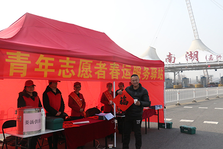 2月1日上午9時許,冒著凜冽寒風,嘉紹管理處負責人和志愿者們早早將南湖收費站春運服務驛站可以提供的各項免費服務措施準備妥當:便民小藥箱、簡易維修工具箱、手機充電座、針線包、行車指南、免費贈送的“福”字……嘉紹管理處負責人說:“我們希望將公司“真心真情 一路同行”的價值觀傳遞給廣大司乘人員,讓這個驛站不只是一個過往司乘駐足的臨時站點,而是更像避風港灣、像家一樣的地方,即便只有片刻停留,也能感到無限溫暖。”