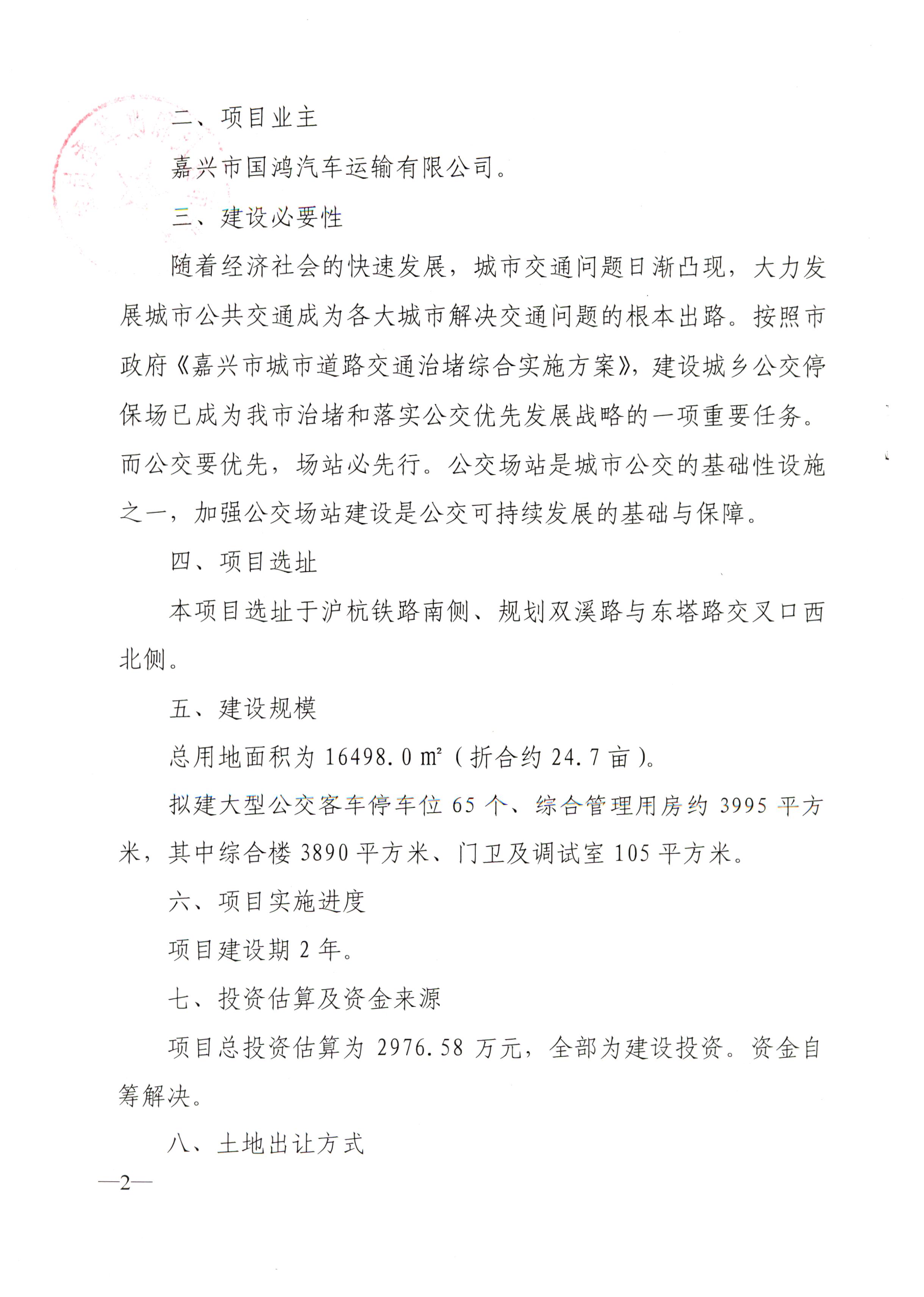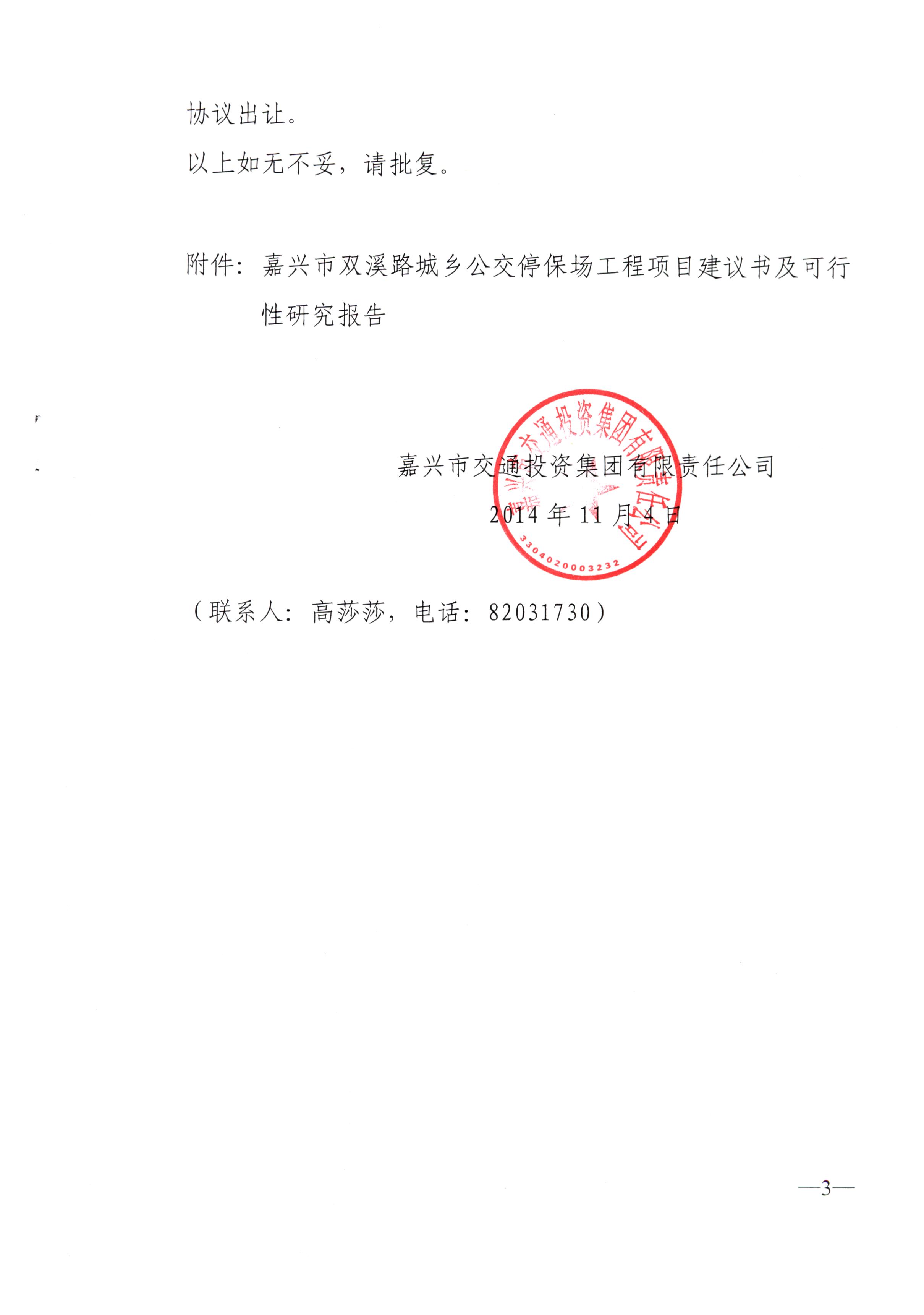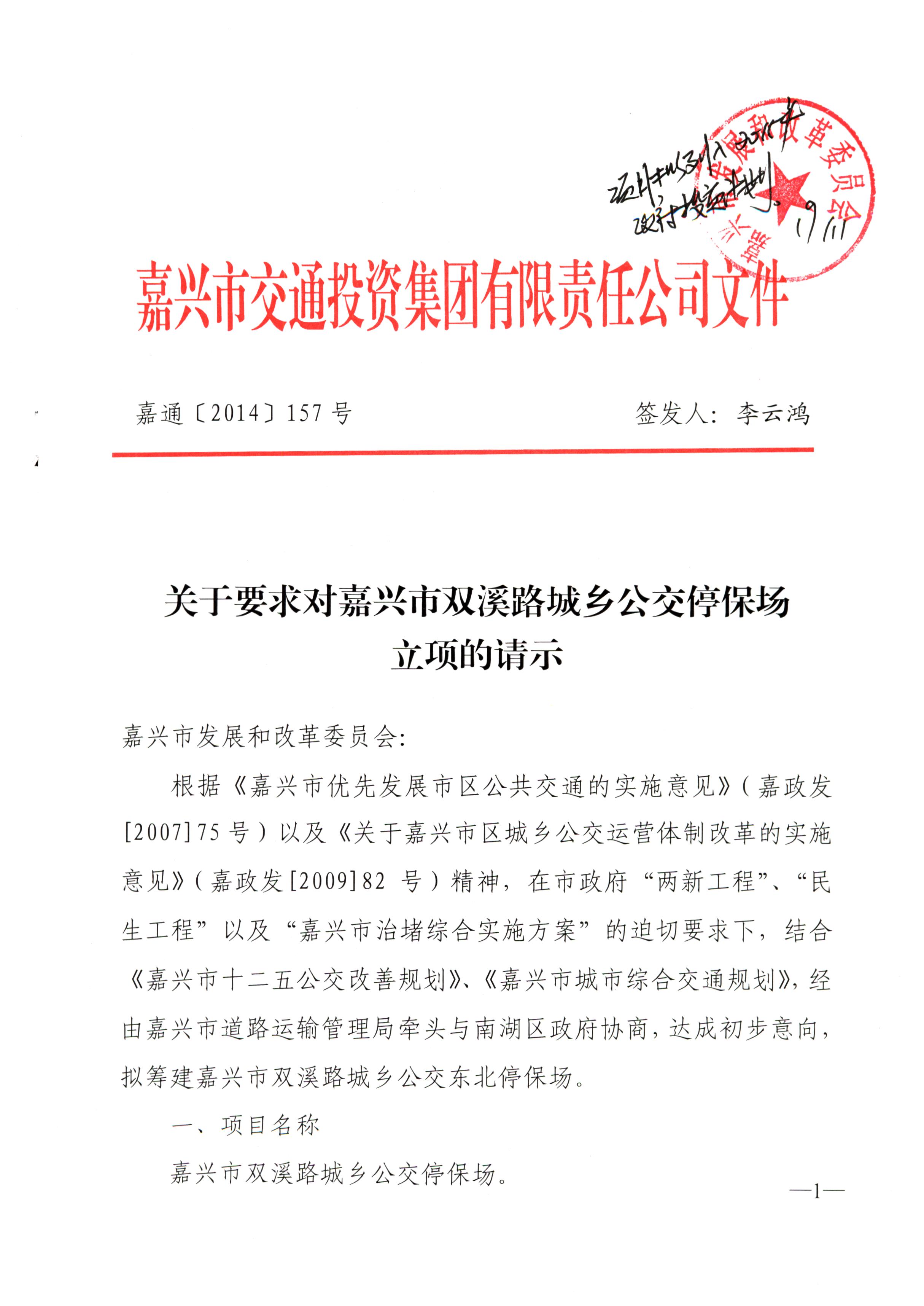 關于要求對嘉興市雙溪路城鄉公交停保場立項的請示
